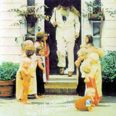 9. Yahowa 13 : To the principles, for the children. Higher Key Records 3309 / 1974-1975 Yahowa collection disc 9 Captain Trip CTCD-138* "At the end of 1974 The Source sold their restaurant and moved to Hawaii. There they went looking for paradise only to encounter hostile locals, who were reluctant to rent out a pad for Yahowa and his 13 wives, forcing them to temporarily retreat to Northern California. But they eventually reconfigured themselves and returned to Hawaii for a final fractious stand. "To the Principles, for the children" dates from this period and the tension shows. Its two long tracks are broken into untitled fragments, one of them an ode to "woman power" worthy of Helen Reddy. More frequently Yahowa locks into heaven chant mode, surrounded by instrumental rings that recall The Magic Band of "Abba Zabba". Very possibly, this album explains a great deal of the Father's philosophy-that is, if you can make out the words, of which there are many. By way of compensation the ensemble seamlessly blends effects and percussion, and when the kids'chorus of "Yahowa" starts up at the end you'll know you've already been somewhere." Byron Coley A more personalised painfully vulnerable album style of songs. Odd. Musically not always that interesting, but charming at some points within its fragmented nature. Tr.1, 526-804 Tr.2, 234 3 Tr.2, 759-1032 |