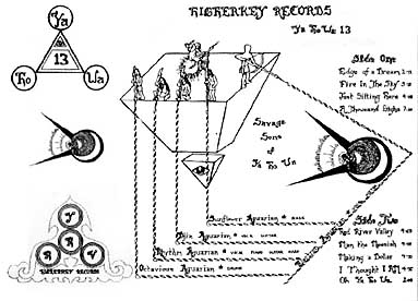 10. Fire, Water, Air is Djinn, Arelich,Pythias, Octavius, Sunflower : Golden Sunrise with Sky Saxon & Ya Ho Wa 13 Emerald Light ELR-84510 /1977 Higher Key Records 006 (CD) Yahowa collection disc 10 Captain Trip CTCD-139* "Then, on 25 August 1975, Yahowa went hang gliding for the first time in his life. His maiden flight was short. He landed badly and broke his back. He refused medication, relying instead on massages and salt packs, which kept him alive for all of nine hours. Following his instructions, the family gave his body an anema, lit insence and chanted three days before they called the authorities to remove the heat bloated corpse. A rumour persists that Yahowa was stuffed and mounted in a corner of the family's Hawaiian homestead. More likely he was cremated. After his death The Source splintered, but the musicians of Yahowa 13 renamed themselves Fire, Water, Air (possibly what Yahowa means in astrological terms). In 1977 they released an eight track cartridge "Golden Sunrise" continuing Yod's legacy. It's hard to tell whether its weird effects are intentional, or whether the tape recorder was just out of phase. But when Sky Sunlight Saxon*, an acolyte since 1969 makes his first appearance midway through, the session takes off. The extended psych jams are a perfect match for Sky's boiling word gush, and the results are transportational in the extreme." Bryan Coley ° he used equipment not strong enough for his weight. * later famous in The Seeds I especially like the Neil Young like American native Indian in favour song "Across the prairie". "Celebration" is a far out Hare Krisjna like celebration in a distance. Tr.9, "Across the prairie" 5 min 11. Yodship Private pressing / Father Yahowa collection disc 11 Captain Trip CTCD-140* Infinity driven hippie folk in memory of Yahowa, with its moments. "The mysterious "Yodship" in the late 70's by unnamed family members, features two untitled suites in praise of Yod, which are eerily remniscent of music by other cults, like the Manson Family, The Jonestown Choir, Spirit in the Flesh, Sun Ra's Arkestra etc. The funaral rite for a dream, its edge of depressive menace gives it a very high rate on the loner folk-psych scale." B.Coley In some way it's like music from Yahowa's mourning sheep, from children crying for their father" I wonder now if a great personality replacing the Power of Father could provide adultery to any followers when such person disappears and with him his power to concentrate renewing inventive creation. Can a leadership, not only for the moment of its creation, could ever provide spiritual adultery for worshippers of creative energy after a process of chance shortly occuring ? Tr.1, suite 1, -600 Tr.2, suite 2, 931-1119 RELATED SINGLES : |