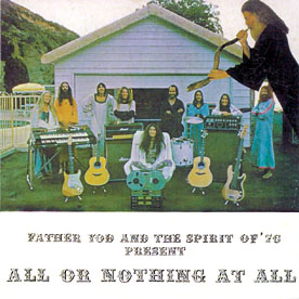 YAHOWA : THE STORY, THE RADIOPROGRAM, CHRONICALLY WITH DISCOGRAPHY "In 1969 To Baker, a middle aged follower of the Yogi Bhajan a Kundalini yoga master and health food prophet who came to the US on the heels of the Maharashi. When Bhajan declared that he was not God, Baker assumed the mantle himself. He gathered a group of acolytes who became known as The Source and opened a health food restaurant, The Aware Inn, in Hollywood's Laurel Canyon. Eventually dubbed Father Yod (later changed to Yahowa), Baker espoused a philosophy dictating kindness to animals, a rw fruit and vegetable diet, wearing the white cotton clothes, and sex without orgasm. Apocryphal stories about The Source's practices abound. The most persistent was based on the similarity of the spelling between god and dog. Among the faithful who toiled at the Aware Inn were a number of musicians, whose talents Yod enlisted when the tapes began spooling." Byron Coley (from review in the Wire : see note at the end) DISCOGRAPHY : 1. Father Yod and the Spirit of '76 : Kohoutek Higher Key Records 3301 / 1973 Yahowa collection disc 1 Captain Trip CTCD-130 *** A little bit "incredible strange" or over the top of odd singing vocals, not always with the best voice in an improvisational manner (piano, electric guitar, el. bass, voice, backing female vocals). Liner notes : "Kohoutek is an energy. Scientists estimate that its radiance will excel Haley's Comet 50 times, its head to be 100,000 miles in diameter, and its tail to span 100,000,000 miles in space. It will not appear again they say for another 80,000 years. Man in his history and myth has long associated the comet with the ominous power of the unknown. He has learned that they bring changes. Life after their fiery visitation is never quite the same. What is Kohoutek ? Why is it coming ? What will it bring ? The mystery of "K houtek" is explored in spontaneous music, sound and song on Higher Key Record's first release by Father Yod and The Spirit of '76'. Don't stay in the dark Kohoutek is for you." PS. The text of "I am God, I am the Father of All" (click cover to see it readable), according to the aditional liner notes came "from the Father of All Words to his son Yahowa God of this sphere who is here, now." Tr.1, 737-1455 Tr.2, 120-720 2. Father Yod and the Spirit of '76 : Contraction Higher Key Records 3302 / 1974 Yahowa collection disc 2 Captain Trip CTCD-131 *** Somewhat low key psych with nice flute, el. Guitar, improvisation, voice, gospel like female vocals, drums, el.piano and organ. Side 2 is great. ( The 13 members on the album : Octavius Aquarian, drums and percussion, Pythias Aquarian, bass, Cinderella Aquarian, vocal, Zinuru Aquarian, recording centre, Vibration Aquarian, electric organ, Rhythm Aquarian, concert grand piano and electric piano, Zoraster Aquarian, lead rhythm, Anastasia Aquarian, vocal, Damian Aquarian, recording engineer, Aquariana Aquarian, vocal, Djin Aquarian, rhythm lead, Mother Ahom Aquarian, vocal, Sunflower Aquarian, bass) Tr.1, 800-1330 Tr.2, 1200 |