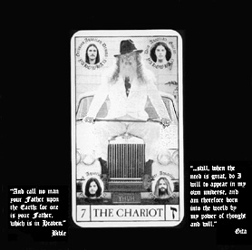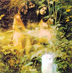 The related singles are not worth to trace musically. It contains some garage rock from Sky Saxon, but "There's nothing from his most Yod-like solo release, "Lover's Cosmic Voyage"." B.Coley All singles were released under the names of "World Peace Band", "Sky Saxon Sunflower Dragon Slayers" with "the Bangles Vicky and Debbie", or with "The Lamed",or by "Hale Sunlight Wings White Magick + Being Poor", or by "the Universal Stars Band" (CD released as related singles, CTCD-141) Unreleased materials was released as disc 13 from Captain Trip Records, CTCD-142, all by Fire, Water and Air, "largely mainstream rockoid material... plus a Saxon rap about being nice to dogs.*" * idiot hippie talk in fact. Quite OK is an earlier Yahowa track without the master from "Penetration". Tr.9, "Sky Sunlight Saxon speaking to the Earth Aquarian Family" 5 min This track, from the most loyal follower, telling about the music which I played, is a good track to end with, giving a perpsective overview but shows also how much respect as well as naivity Yahowa left behind. All quoted parts from Byron Coley, came from an article with review of the 13 CD box of Yahowa 13, which first appeared in The Wire magazine issue 180 February 1999. These quotes are reproduced by permission. Link to The Wire magazine : www.thewire.co.uk. An interview with Yahowa members can be found at http://www.furious.com/perfect/yahowa13.html Unreleased albums will come out soon at http://www.coda-records.com/news.html I started a page with some filosophical remarks about some concepts related with Yahowa : "As above, so below, New Order of the Ages", the number 13 in a group, the oncept of the guru, and the principle of "I am God", which I will later review better at a page about Salvador Dali's opera "Être Dieu". (I lost the original study of it before because of a virus computer crash, so I might need some time to reconstruct this). These remarks are published in a seperate Yahowa's concepts - remarks page Thank you J.W. for borrowing the full collection box. Another tribal psychedelic music sage like figure is Wulf Zendik Another curiosum sage like figure is Moondog Later the tribal commune group Cromagnon will have a seperate page too. Go back to the Main index |